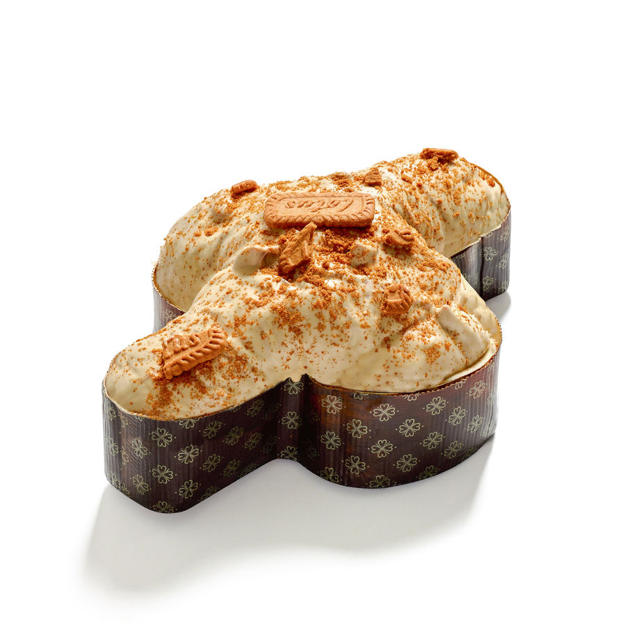 COLOMBA ARTIGIANALE FARCITA CON CREMA LOTUS E GLASSATA CON CIOCCOLATO BIANCO, LOTUS E BISCOTTI LOTUS